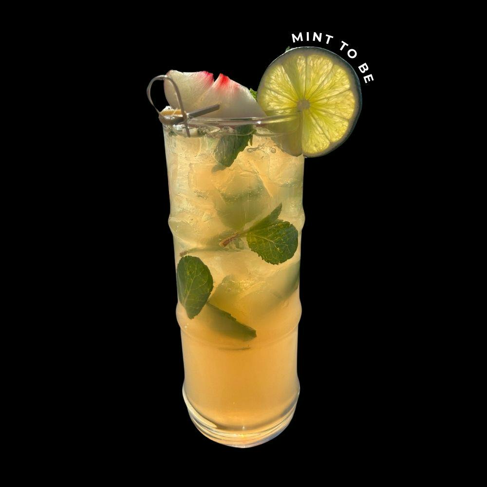 Combining tequila, elderflower, lime juice, peach puree, simple syrup, angostura bitters, mint, and soda water, our Mint to Be is truly meant for this Summer season