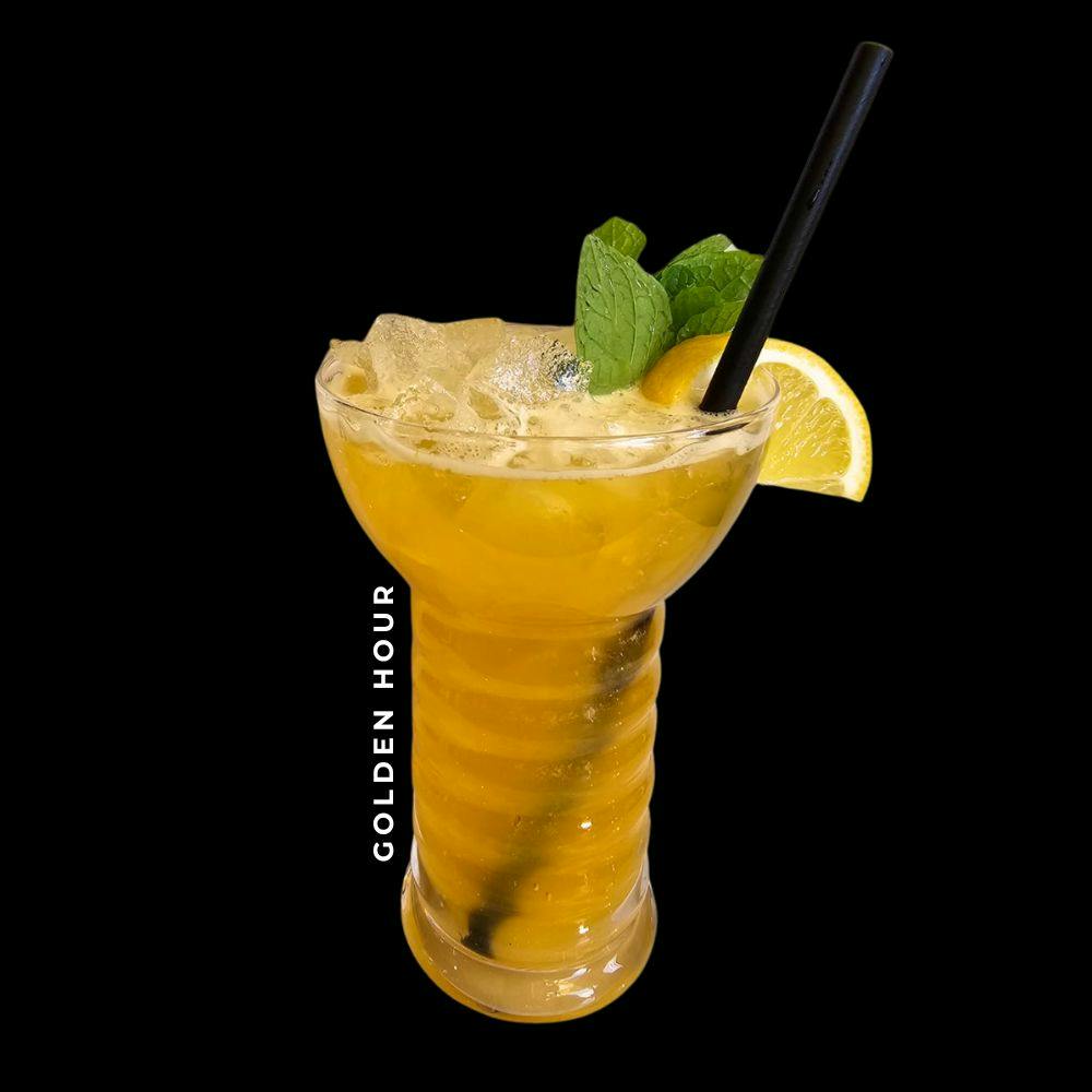 Elevate your summer evenings with our Golden Hour. While combining Woodford Reserve bourbon, triple sec, falernum, lemon juice, and passion fruit, this cocktail offers a vibrant flavor and will leave you wanting more